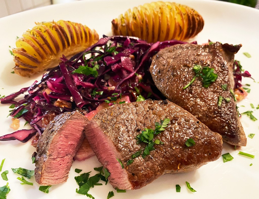 Heute möchten wir Euch ein schnelles aber unglaublich leckeres Hirschsteak-Rezept in Form einer kleinen Bildergeschichte vorstellen.