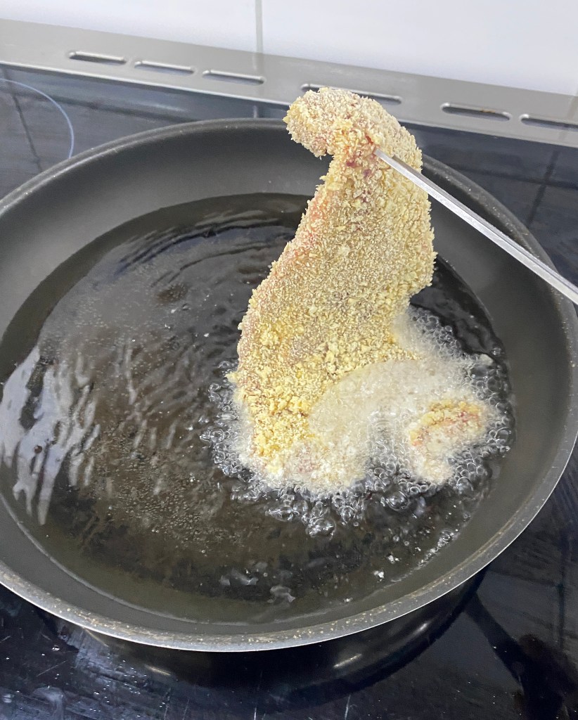 Auch die fertig panierten Wildschweinschnitzel bekommt Ihr am Samstag wieder bei uns am Verkaufswagen. Ihr benötigt nicht viel mehr als eine Pfanne mit Bratfett oder Pflanzenöl. Fett heiß werden lassen und die Schnitzel von allen Seiten goldgelb ausbacken – fertig.