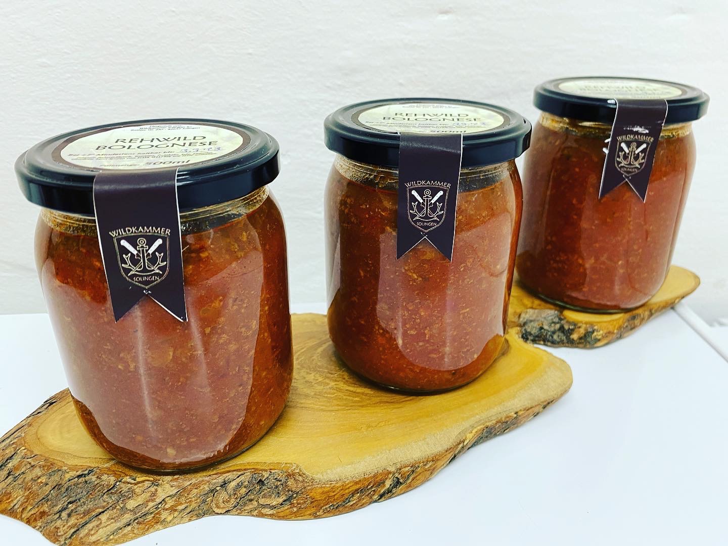 Wildgulasch, Wildburger Pattys, Wildfrikadellen, Wildschweinrücken, Hausgemachte Konfitüren, Wild-Stew, Rotwild Bolognese, Wildbratwürste