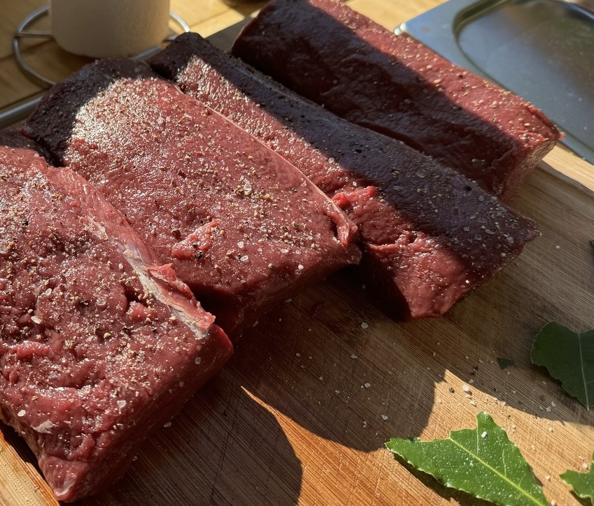 (Wir können nur soviel Wildfleisch anbieten, wie wir zuvor bei der Jagd erlegt haben.)