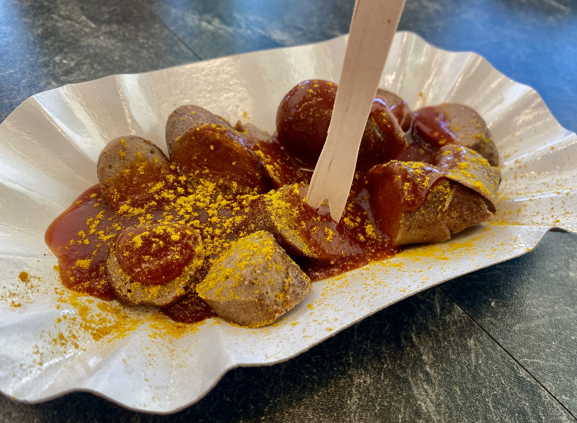 „GEGRILLTE WILDCURRYWURST“
