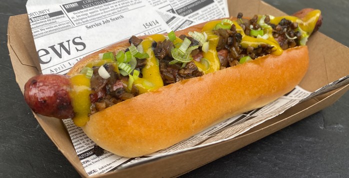Als warme Speise zum Direktverzehr (oder zum mitnehmen) gibt es diesen Samstag Jäger-HOTDOGs mit gegrillter Wildbratwurst „Nürnberger Art“ & geschmorten Champignon/Zwiebel Topping.