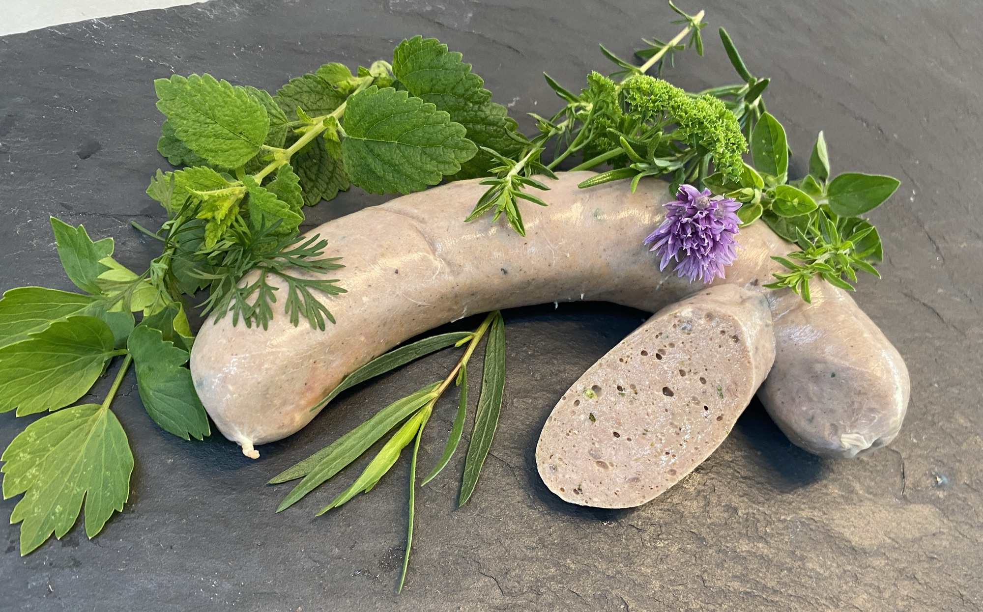 Ein Anlass um eine Kräuterbratwurst mit den Kräutern der Saison aus unserem eigenen Beet zu kreieren.