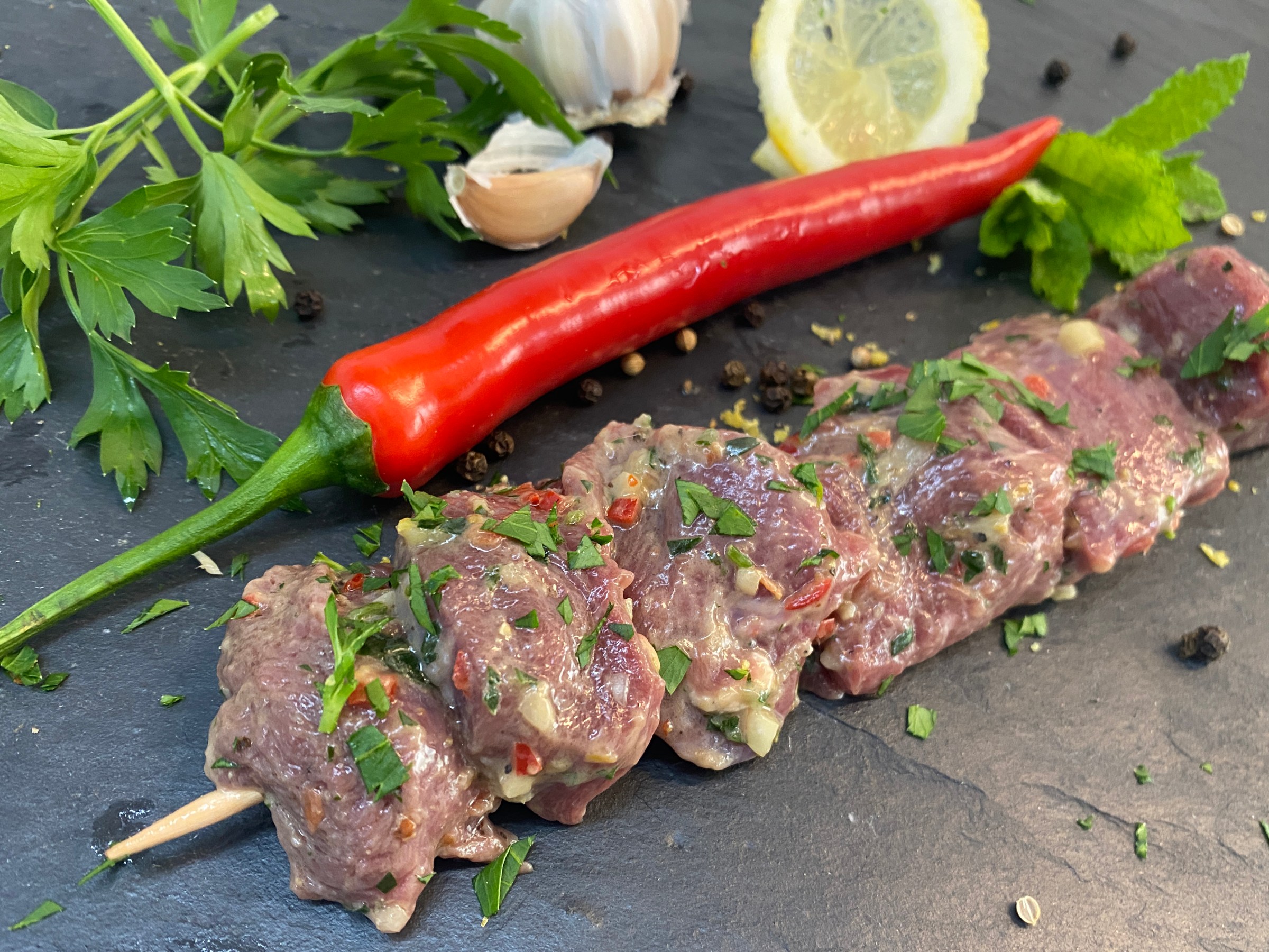 Passend zu unserem dieswöchigen Rezeptvorschlag bekommt Ihr am Samstag unsere Shish-Kebab-Spieße vom Rehwild küchenfertig bei uns am Verkaufsstand.